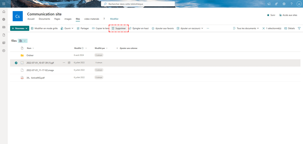Étape 3. Cliquez sur « Supprimer » ci-dessus pour supprimer ce raccourci SharePoint de OneDrive.