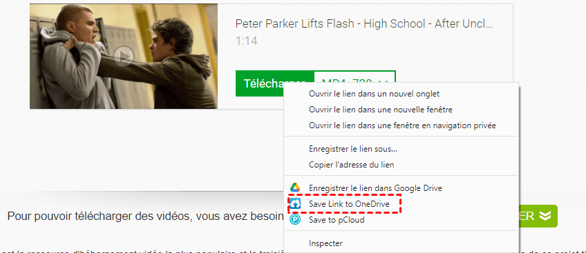 Étape 4. Vous verrez apparaître des liens de téléchargement de vidéos avec les résolutions disponibles et faites un clic droit sur le bouton « Télécharger » et sélectionnez « Save Link to OneDrive ».