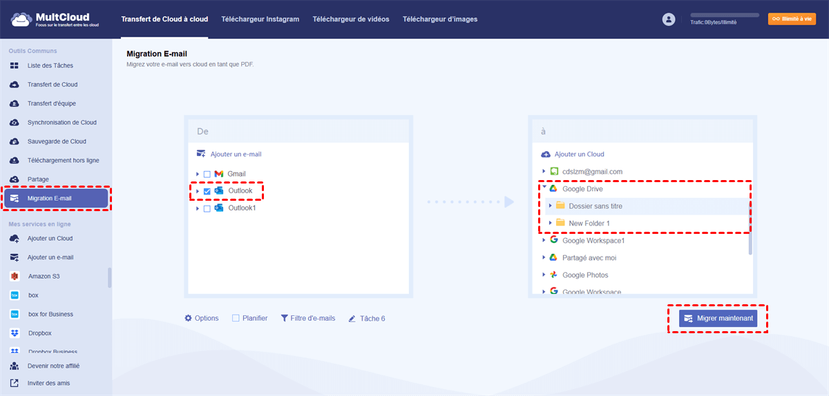 Voici les étapes simples pour exporter un mail Outlook Online vers Google Drive avec MultCloud :
