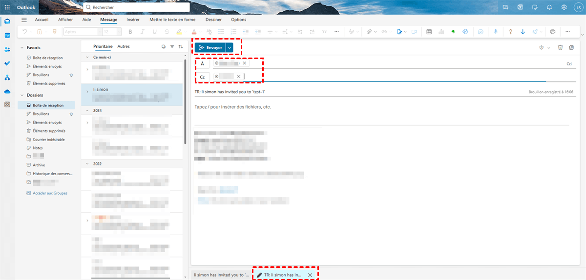 Une autre méthode pour exporter des e-mails depuis Outlook Online consiste à les joindre à de nouveaux messages et à vous les envoyer. Cette méthode est utile lorsque vous n'avez besoin que d'un petit nombre d'e-mails, mais elle est chronophage. La procédure est simple :