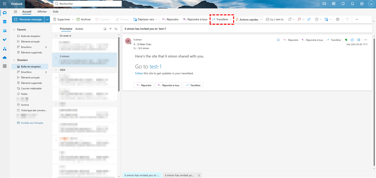 4. Dès réception de l'e-mail transféré, accédez à votre compte de messagerie externe.