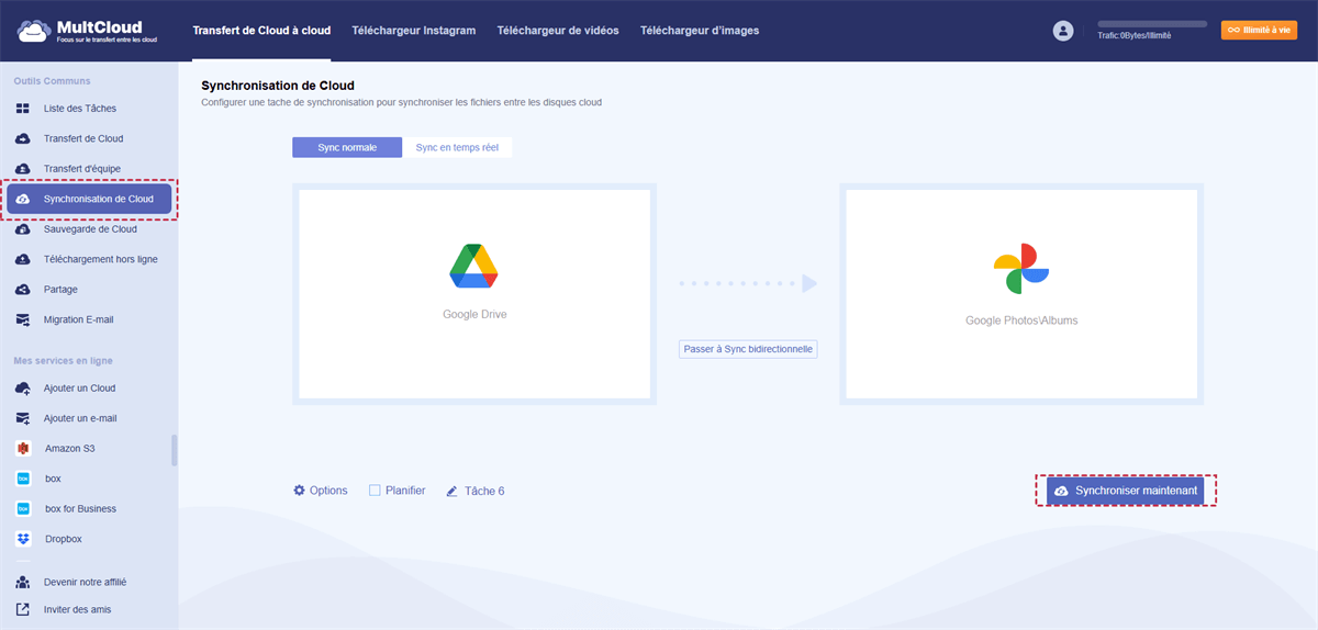 Et bien, vous pouvez suivre les étapes ci-dessus après que Google Drive ne se synchronise plus avec Google Photos en 2019. De toute évidence, MultCloud vaut la peine d'être essayé. Outre Synchronisation de Cloud, il propose deux autres fonctionnalités populaires : Transfert de Cloud et Sauvegarde de Cloud. Le premier permet de transférer directement des données entre différents clouds sans téléchargement ni téléversement, tandis que le second permet de sauvegarder des jeux, de la musique, des vidéos, des documents et tout autre fichier d'un cloud à un autre.