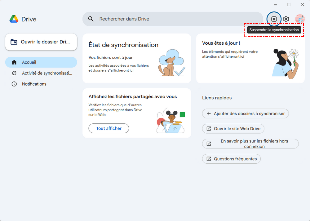 Solution 1 – Mettre en pause et reprendre Google Drive