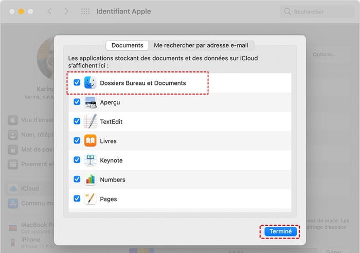 Suivez les étapes pour restaurer Dossiers Bureau et Documents iCloud ainsi que leurs fichiers :