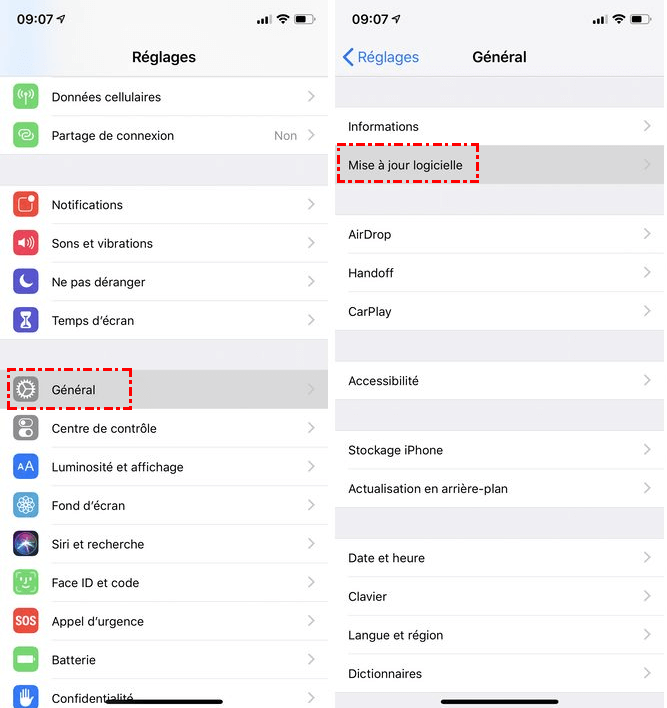 Assurez-vous que votre appareil dispose de la dernière version du logiciel en vérifiant les mises à jour dans les paramètres de votre appareil. Installez toutes les mises à jour en attente. Procédez comme suit pour mettre à jour le système iOS sur votre iPhone :