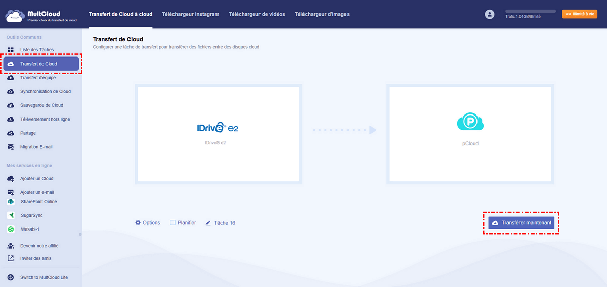 Maintenant que nous avons abordé les bases, voyons comment utiliser MultCloud pour transférer des fichiers d'IDrive e2 vers pCloud.