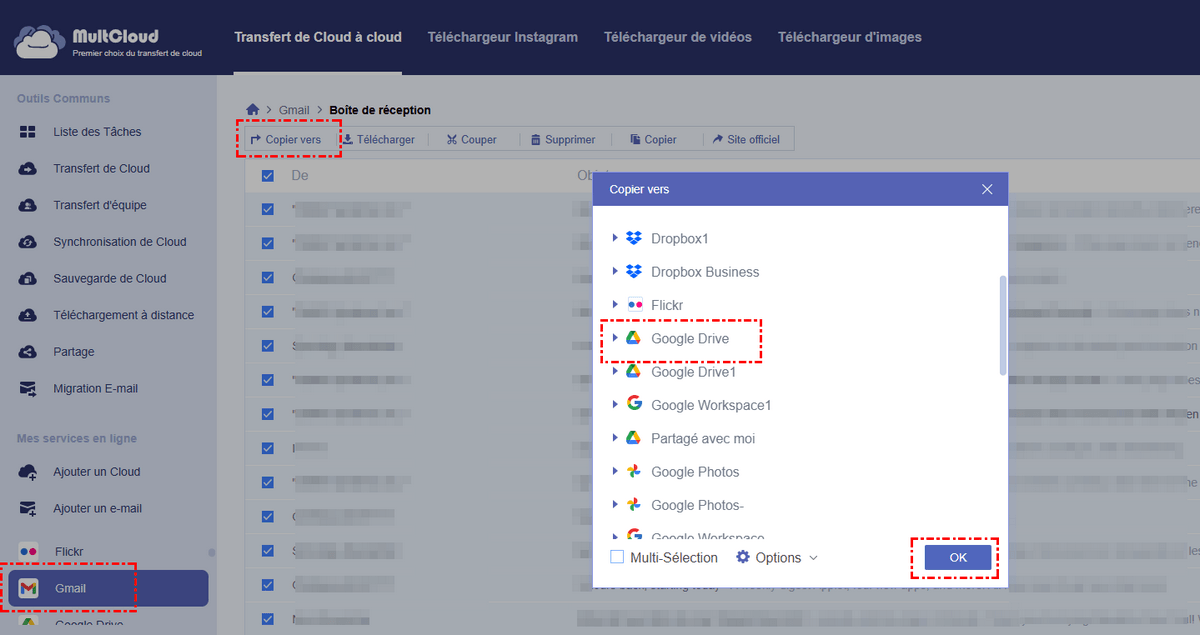 Voyons comment ajouter des e-mails Gmail à Google Drive avec MultCloud :