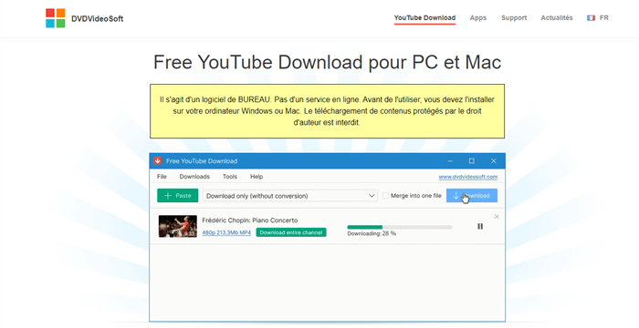Celui-ci est un logiciel de téléchargement de vidéo sur YouTube gratuit très basique, il est gratuit mais alors c'est vraiment bien. Cela parvient à donner tout ce dont un téléchargeur YouTube a besoin. Vous bénéficierez d'un téléchargement fluide et sans décalage via DVDVideoSoft Free YouTube Download.