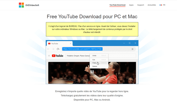 Principales caractéristiques de DVDFab YouTube Video Downloader : Copiez-collez le lien vers le logiciel pour un téléchargement rapide.