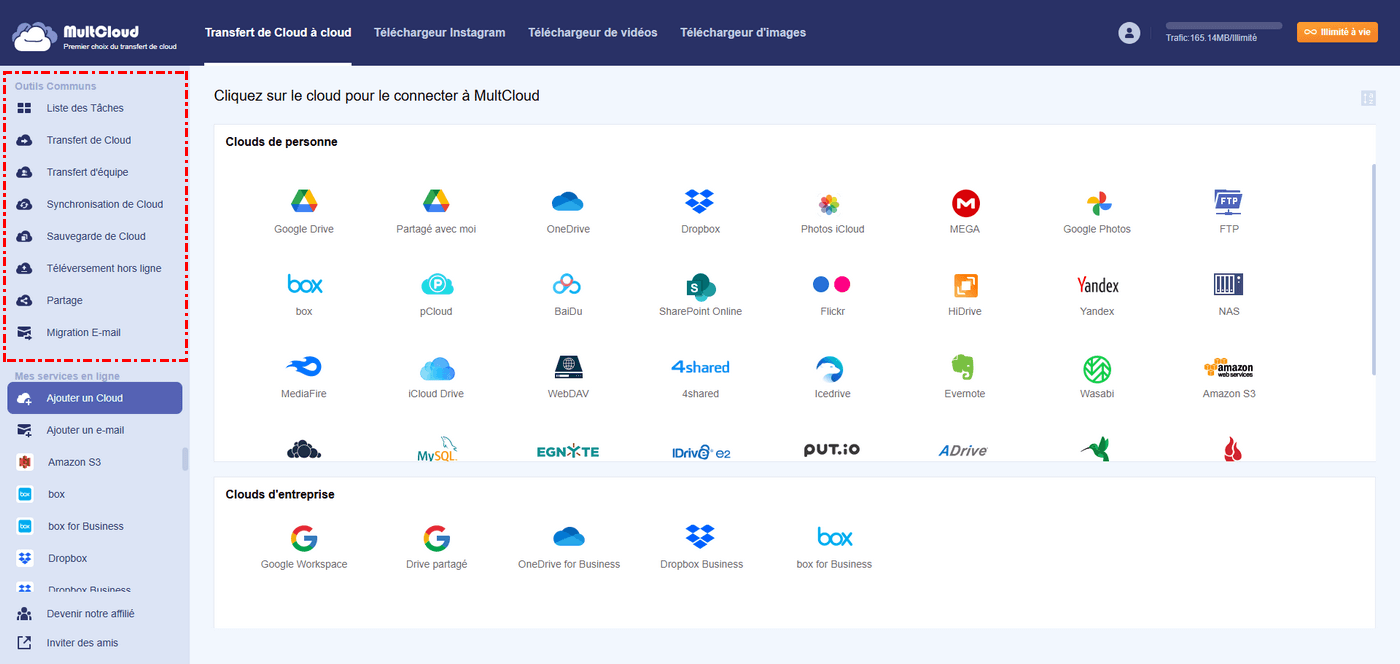Bien entendu, vous pouvez également utiliser les fonctions principales fournies par MultCloud (Transfert de Cloud, Transfert d'équipe, Synchronisation de Cloud, Sauvegarde de Cloud, Téléchargeur d'images, Téléversement hors ligne, Migration E-mail et Partage) pour effectuer des opérations telles que le transfert de données, la synchronisation ou la sauvegarde entre SharePoint et d'autres comptes cloud.