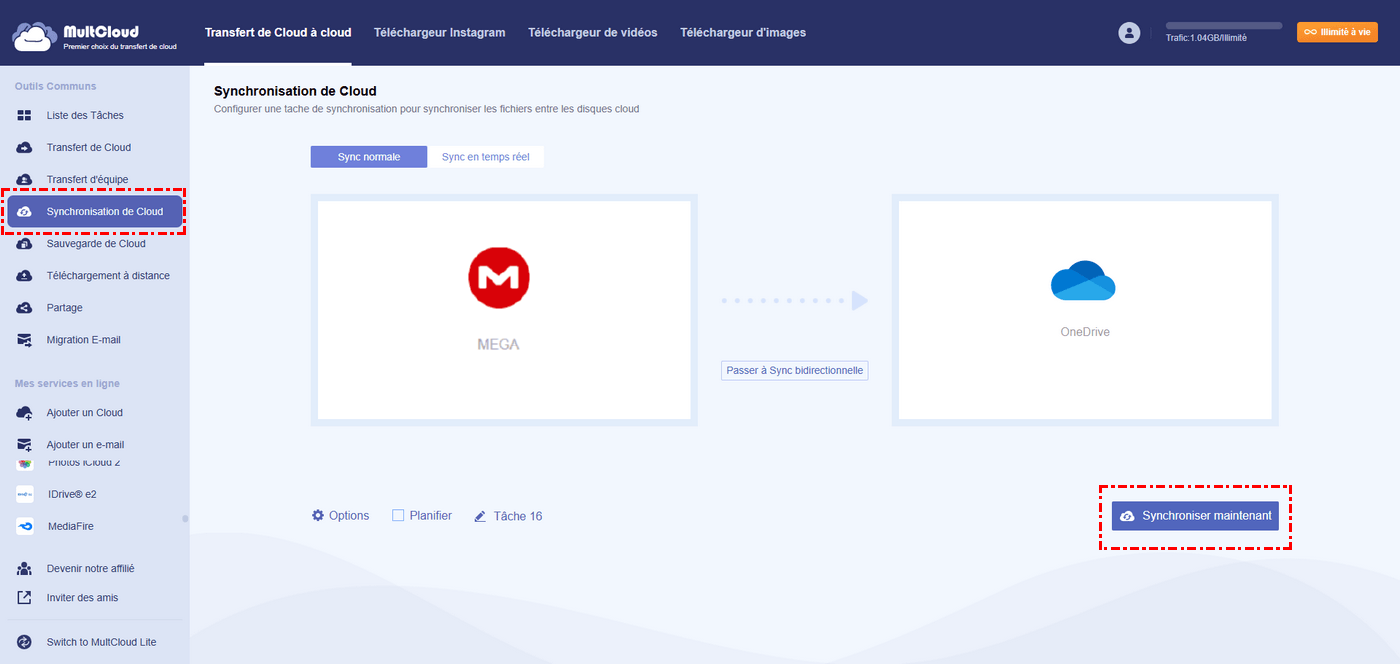 4. Appuyez sur le bouton Synchroniser maintenant pour transférer les fichiers de MEGA vers OneDrive.