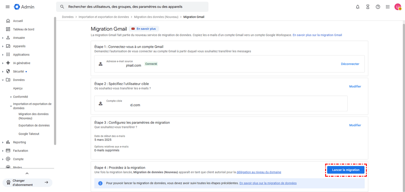 Migrer mes e-mails Google Workspace vers un autre compte via le service de migration de données Google [6 étapes]