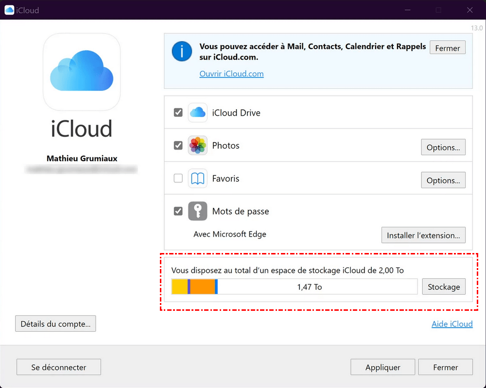 Vérifier le stockage iCloud sur Windows (iCloud pour Windows)