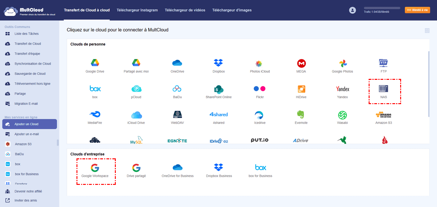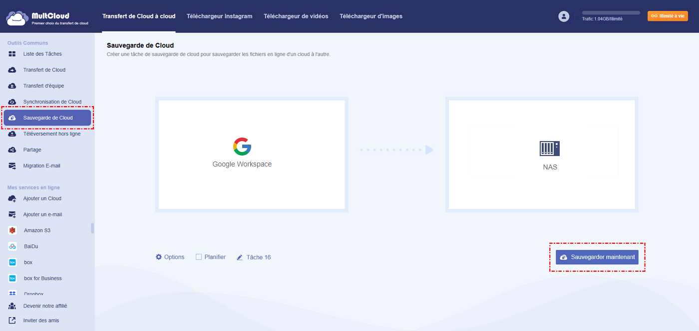 Voici les étapes simples pour sauvegarder Google Workspace sur un NAS Synology avec MultCloud :