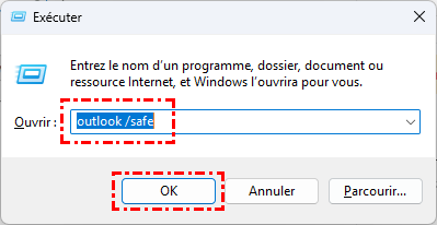 1. Appuyez simultanément sur les touches Windows + R, tapez « outlook /safe » dans la boîte de dialogue Windows qui s'ouvre, puis cliquez sur OK pour exécuter Outlook en mode sans échec.