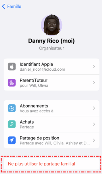 4. Appuyez sur votre nom et sélectionnez « Ne plus utiliser le partage familial ».