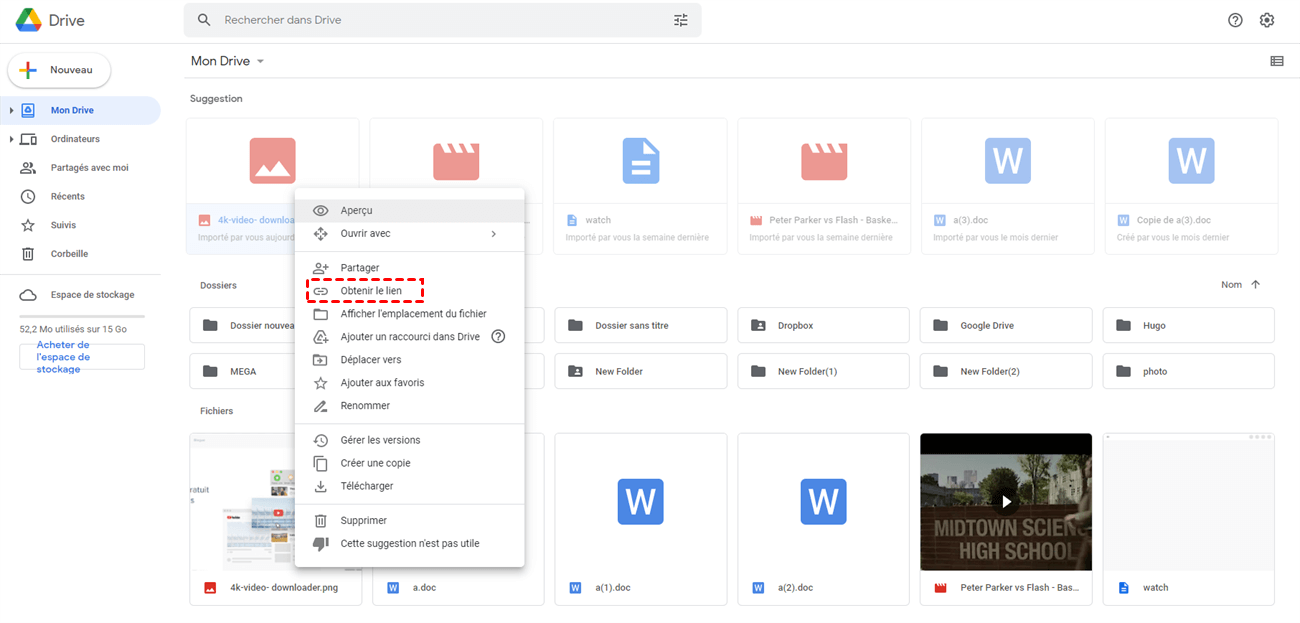 Cette méthode est différente de la méthode 1. Grâce à la fonction « Obtenir le lien », vous êtes libre de partager des photos sur Google Drive avec qui vous voulez. Et vous pouvez également choisir les autorisations du lien.