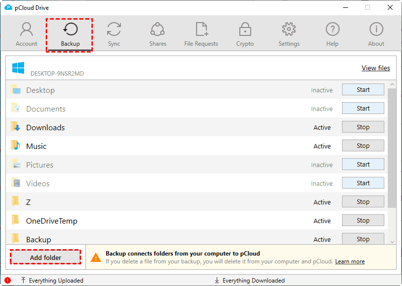 2. Il sera automatiquement ajouté au dossier pCloud Drive et à l'onglet « Sauvegarde » de l'application de bureau pCloud Drive.