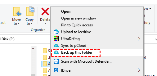 1. Sélectionnez un dossier dans l'Explorateur de fichiers et choisissez « Sauvegarder ce dossier ».