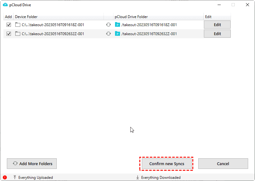 Tous vos dossiers seront synchronisés avec le dossier pCloud Drive et le serveur pCloud.