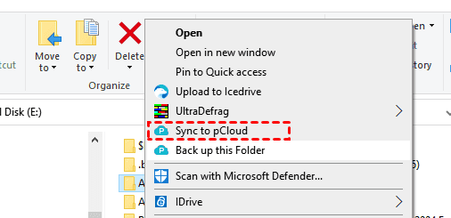 1. Accédez à votre explorateur de fichiers, sélectionnez le dossier, faites un clic droit dessus et choisissez « Synchroniser avec pCloud ».