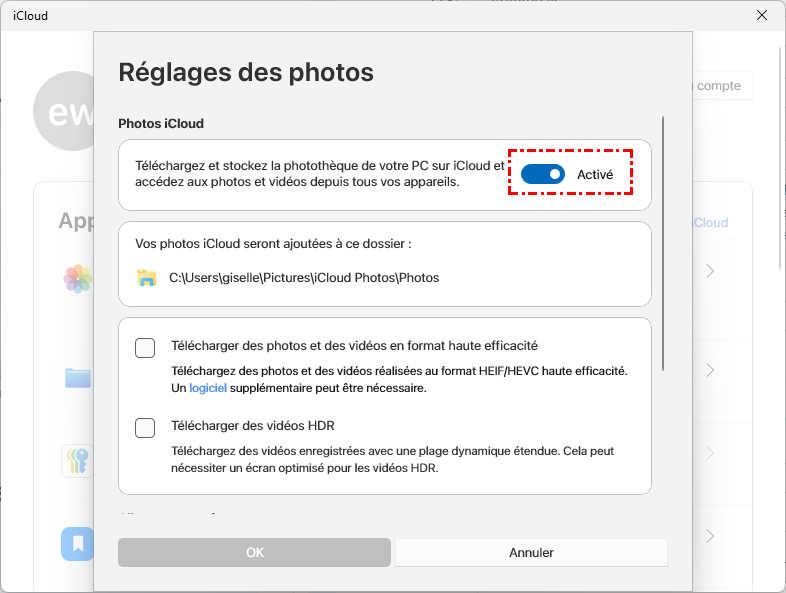 Après avoir activé Photos iCloud, le problème de téléchargement de Photos iCloud sur PC sous Windows 10 a maintenant été résolu.