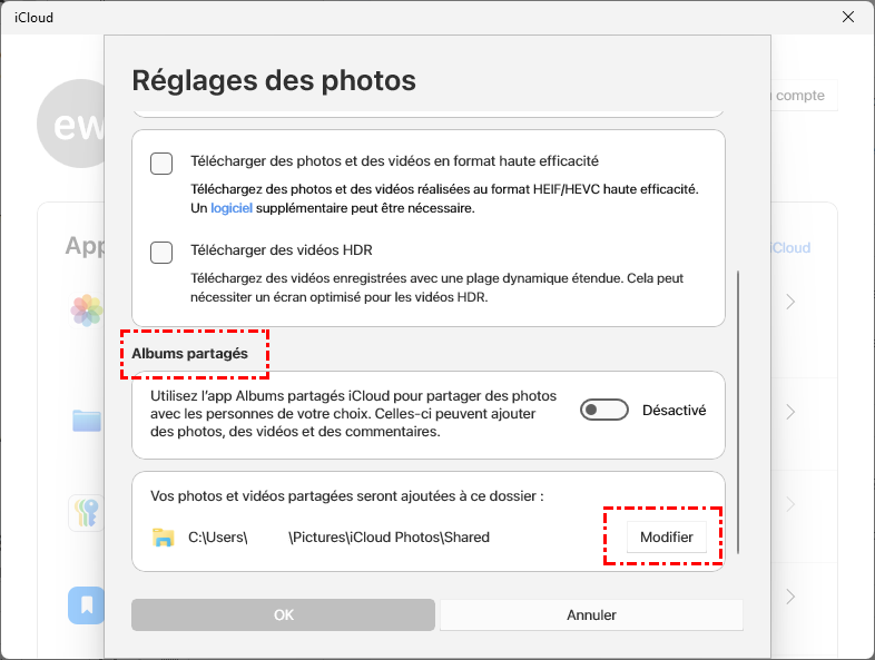 4. Choisissez un autre emplacement comme dossier par défaut pour Photos iCloud.