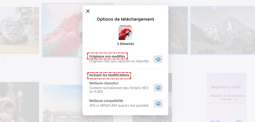 2. Sélectionnez les photos et vidéos, puis cliquez sur l'icône Télécharger.
