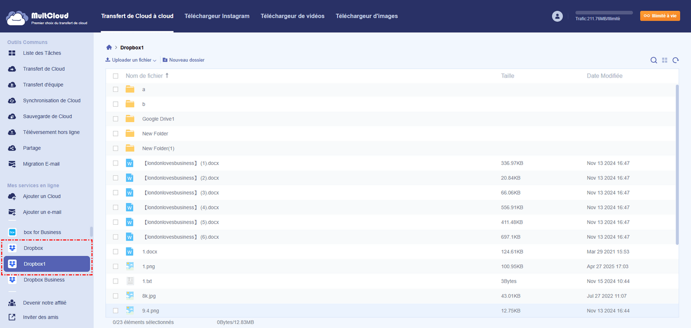 Si vous avez besoin d'associer plusieurs comptes Dropbox pas de synchroniser tous les comptes Dropbox sur votre ordinateur, vous pouvez utiliser une application Web gratuite appelée MultCloud pour gérer toutes vos comptes Dropbox. MultCloud est un outil gratuit de gestionnaire de stockage multiple cloud, il prend actuellement en charge plus de 40 clouds, parmi lesquels Dropbox, Google Drive, Google Photos, OneDrive, MEGA, Box, etc.
