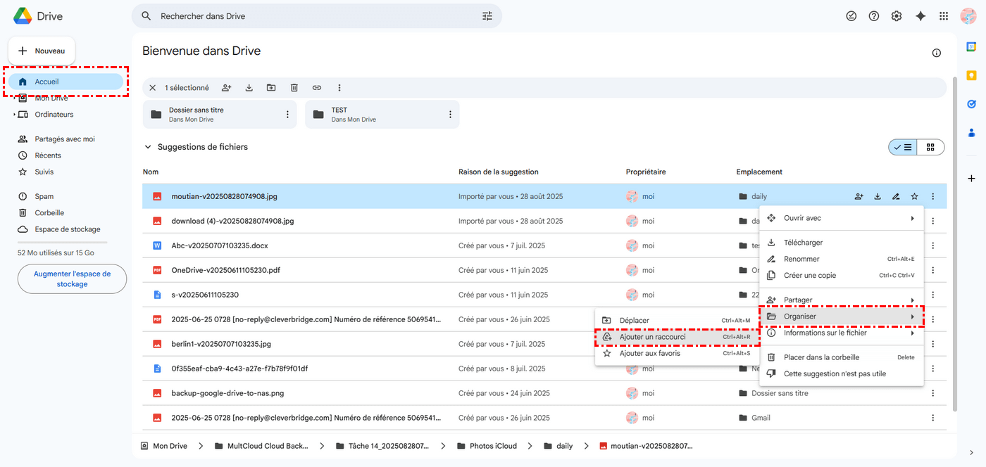 En général, un dépassement du quota de téléchargement sur Google Drive persiste pendant 24 heures. Si vous ne souhaitez pas attendre sa réinitialisation, vous pouvez transformer le fichier que vous souhaitez télécharger en raccourci, puis le télécharger. Vous pouvez également le télécharger sur MultCloud, où vous pourrez ajouter votre compte Google Drive et gérer les fichiers.
