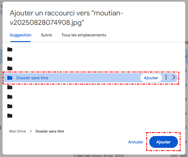 Étape 3 : Choisissez le dossier dans lequel vous souhaitez enregistrer le raccourci et appuyez sur « Ajouter ».