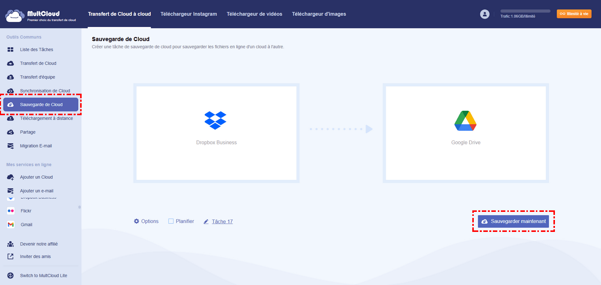 Méthode 2 : Effectuer une sauvegarde Dropbox Business via MultCloud