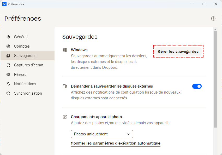 Astuce : Vous pouvez toujours sauvegarder Dropbox sur un disque dur externe pour ajouter une couche de protection.