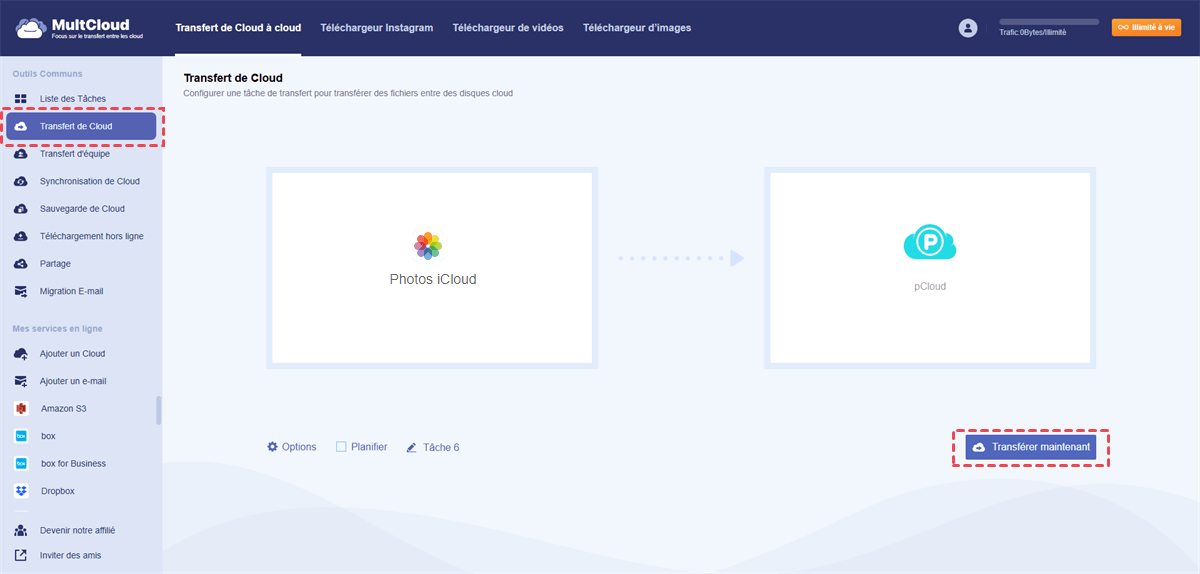 Ensuite, plongeons dans les opérations détaillées pour sauvegarder Photos iCloud sur pCloud via MultCloud :