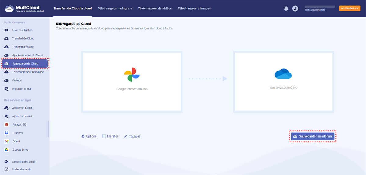 Sauvegarde de Google Photos dans un Autre Cloud à l'aide de MultCloud
