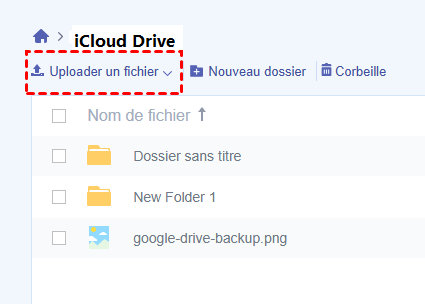 3. Sur l'interface iCloud Drive de MultCloud, choisissez « Uploader un fichier ».