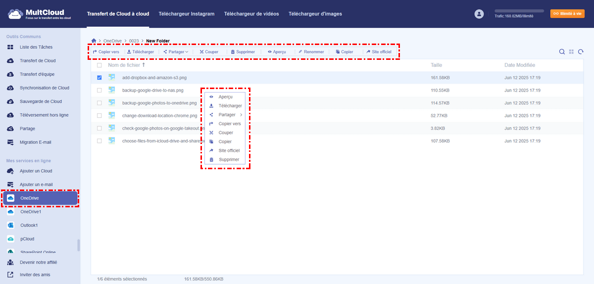 Concernant la sauvegarde de fichiers OneDrive sur Amazon Drive, MultCloud ne prenant pas en charge l'API d'Amazon Drive, vous ne pouvez le faire que par téléversement et téléchargement.
