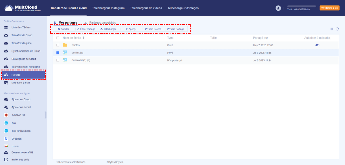 En Savoir plus sur les Fonctionnalités de MultCloud