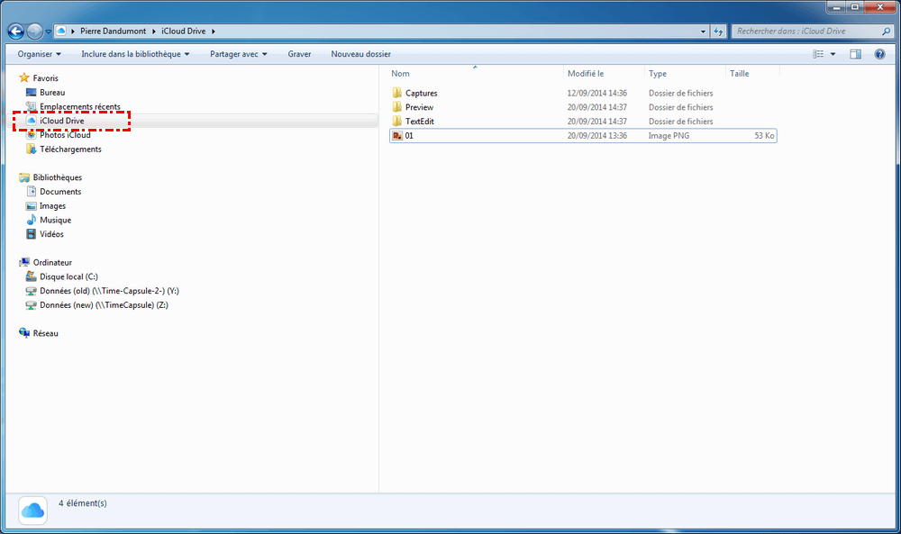 Étape 2 : Un dossier nommé iCloud Drive sera généré dans votre Explorateur de fichiers Windows. Vous pouvez maintenant glisser-déposer les fichiers que vous souhaitez sauvegarder depuis votre ordinateur Windows vers iCloud.