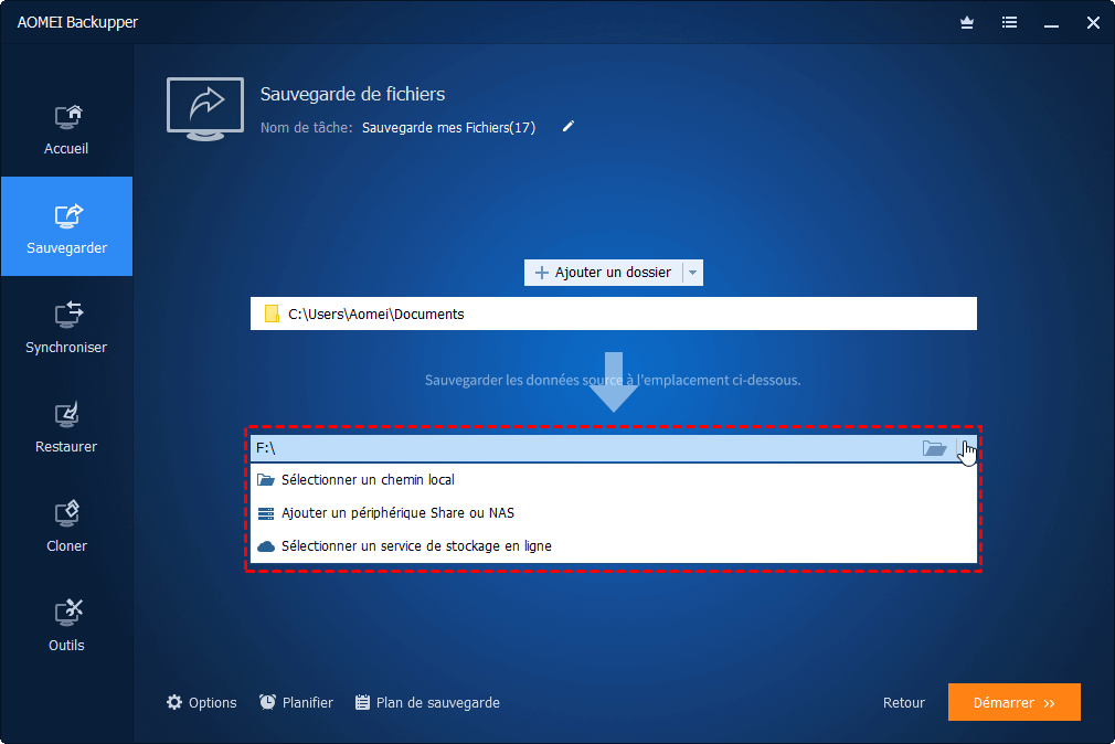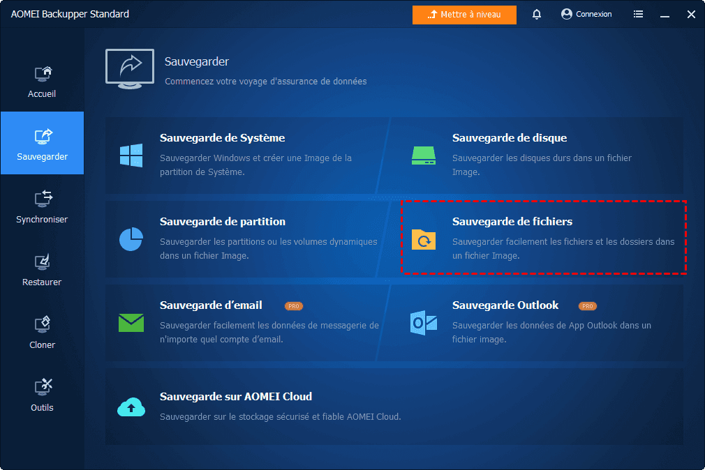 Après avoir expliqué comment sauvegarder votre ordinateur sur iCloud, comment sauvegarder facilement votre ordinateur sur d'autres services cloud ? Outre la fonctionnalité de téléchargement de chaque cloud, vous pouvez utiliser une application de sauvegarde de fichiers pratique et gratuite pour Windows : AOMEI Backupper Standard.
