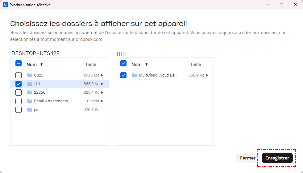 Dans la fenêtre contextuelle, sélectionnez les dossiers que vous souhaitez synchroniser avec votre ordinateur.