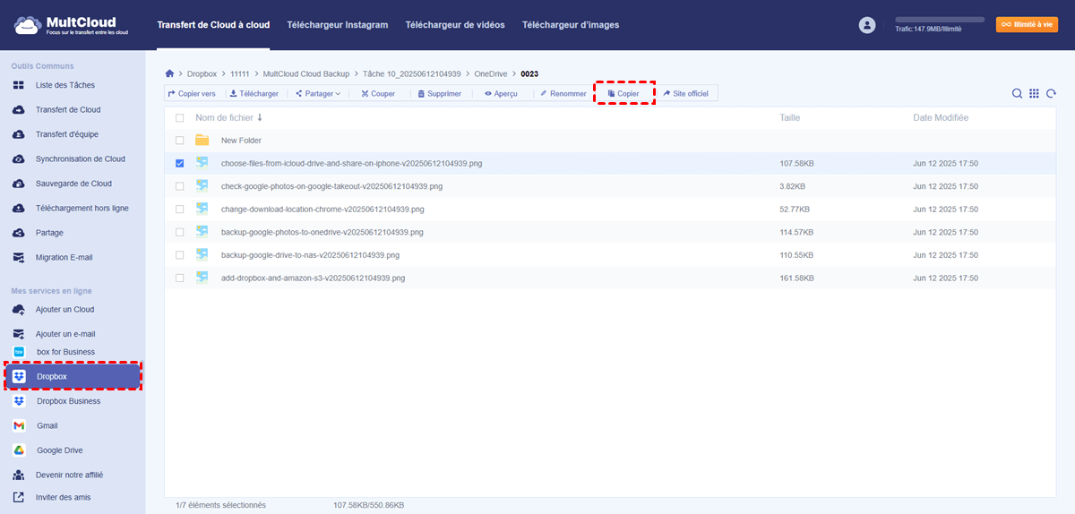 Dans l'interface Gestionnaire de fichiers, gérez des fichiers en cloud. MultCloud peut synchroniser tous les Clouds.