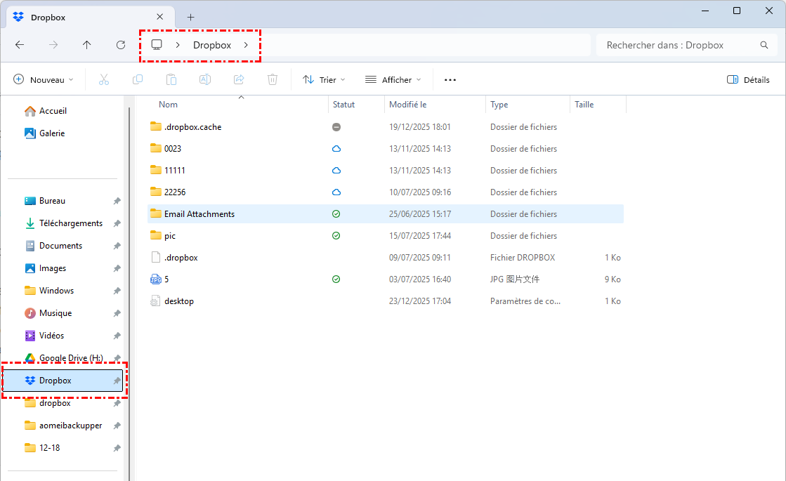 🎈Vous pourriez être intéressé par le transfert de votre compte Dropbox vers des disques durs externes ou par l'enregistrement de vos e-mails Outlook dans Dropbox.