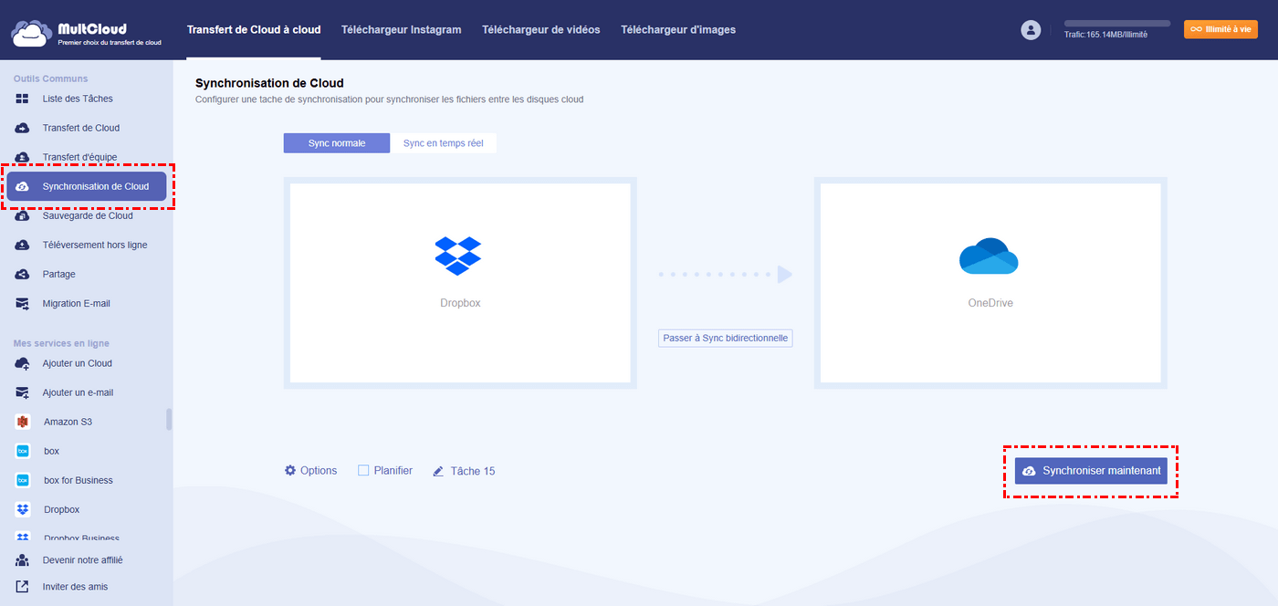 Meilleur moyen : Synchroniser Dropbox et OneDrive avec MultCloud