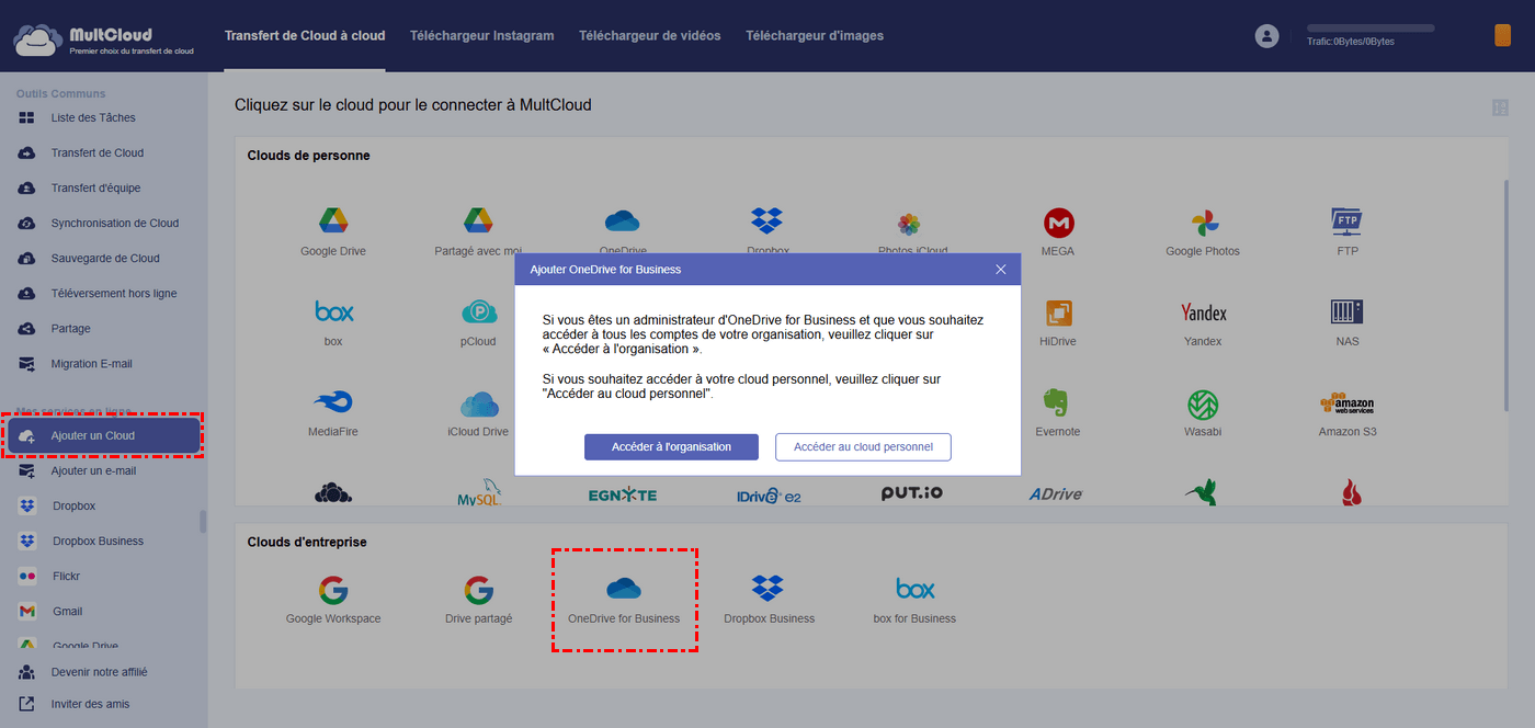 Étape 3. Suivez les mêmes étapes ci-dessus pour ajouter un compte OneDrive for Business à MultCloud.