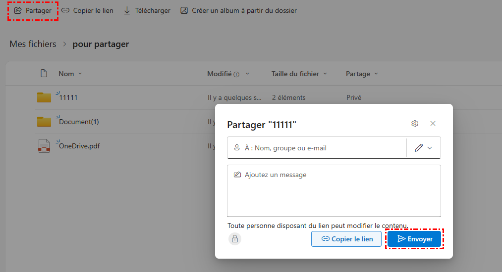 Le processus de partage est beaucoup plus simple que la méthode de téléchargement, mais il nécessite une bonne connaissance des fonctionnalités de OneDrive. Une fois maîtrisé, vous pouvez centraliser le contenu de différents comptes OneDrive. Voici la procédure étape par étape :
