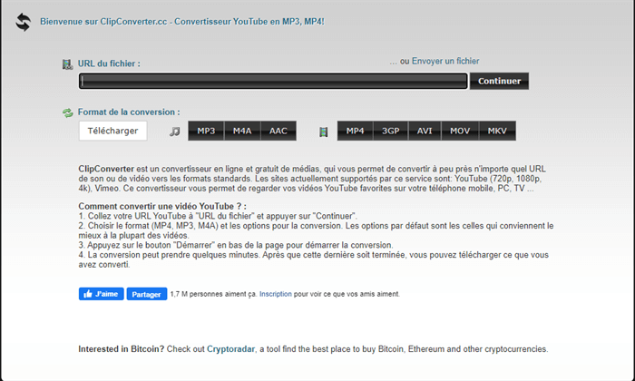 En outre, il dispose d'un convertisseur intégré qui permet aux utilisateurs de convertir des vidéos en différents formats. De plus, cette fonction de conversion offre également aux utilisateurs la possibilité d'extraire des audios directement à partir de vidéos, les formats audio incluent MP3, M4A et AAC. Toutes ces excellentes fonctions font que ClipConverter.CC se démarque des téléchargeurs YouTube en ligne.
