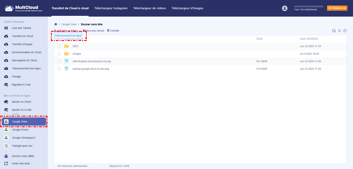 En tant que gestionnaire gratuit de stockage cloud multiple, MultCloud vous permet de regrouper tous vos disques cloud et de les gérer depuis une interface unique. Il offre diverses fonctionnalités pour une gestion simplifiée des fichiers cloud. L'une de ses fonctionnalités distinctives, qui vous permet de télécharger des liens magnet sans client, de sécuriser vos fichiers et de sauvegarder le stockage local de vos appareils, est le « Téléversement hors ligne ».