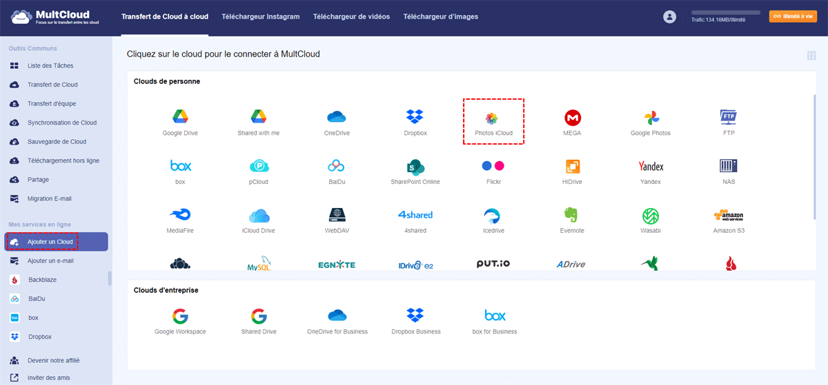 Aujourd'hui, MultCloud prend déjà en charge l'ajout de Photos iCloud, ce qui signifie que vous pouvez utiliser MultCloud pour gérer vos photos iCloud et transférer facilement des Photos iCloud vers NAS, Flickr ou d'autres comptes de stockage cloud.