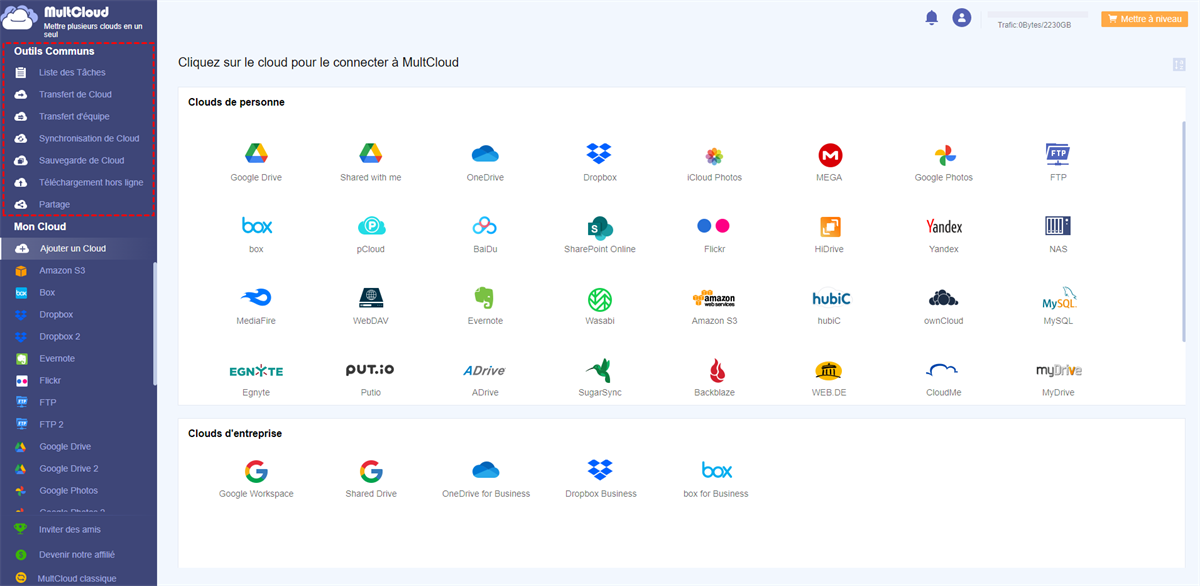 Clouds supportés par MultCloud